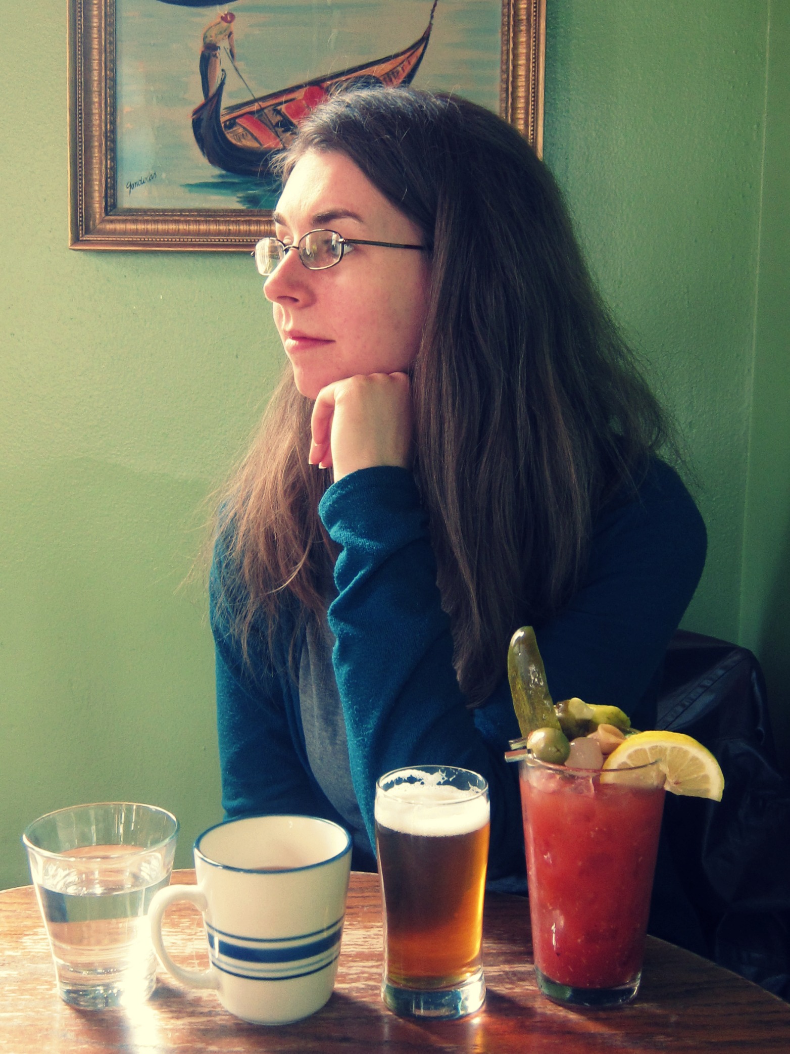 Me at Mickey’s Tavern, our favorite brunch spot in Madison. That’s a Bloody Mary with a beer back. What a way to start a Saturday!